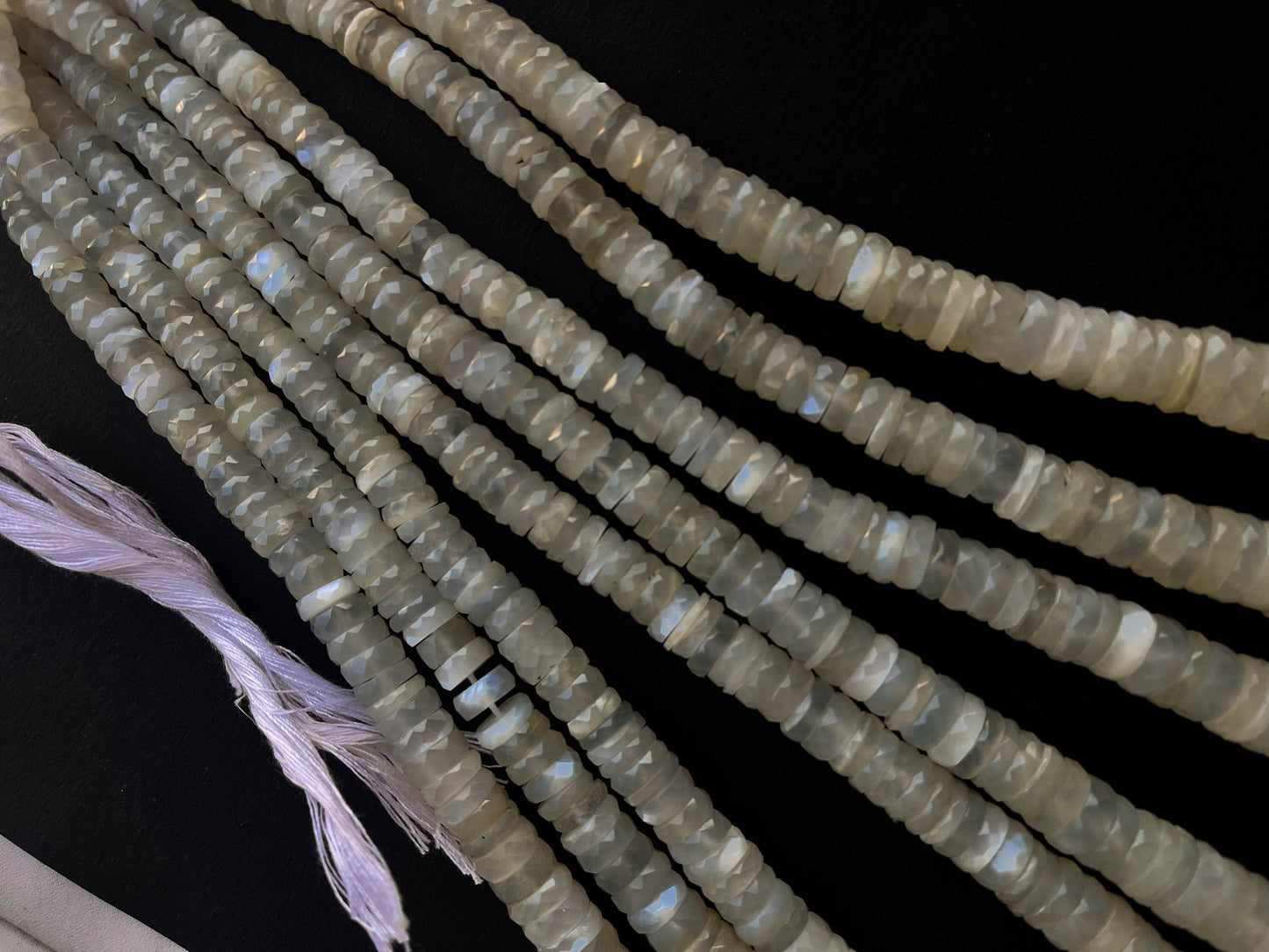16 Inch AAA White Moonstone Faceted Heishi Shape Beads, White Moonstone Beads, White Moonstone Heishi, Natural White Moonstone Gemstone