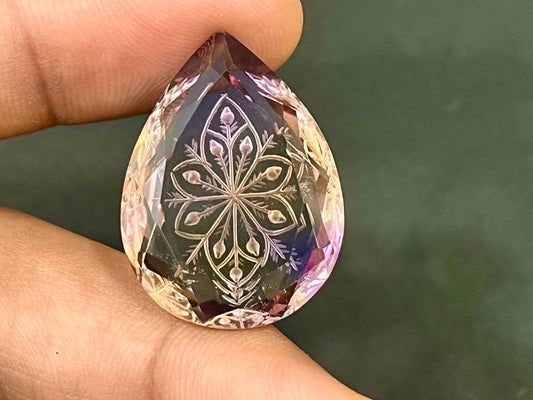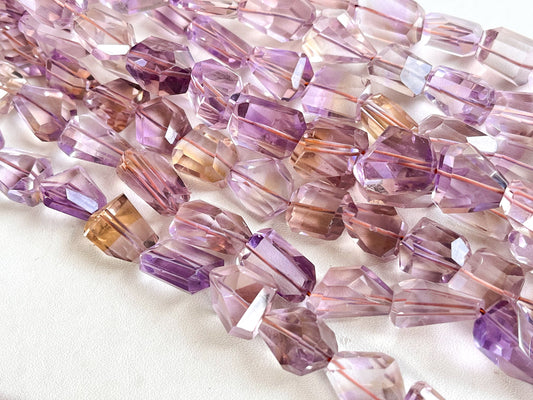 Ametrine, a unique blend of amethyst and citrine, displays purple and yellow hues. It’s known for balancing energy, enhancing mental clarity, and promoting creativity, making it a striking choice for jewelry.