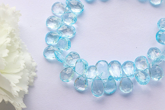 Blue Topaz Pear Briolette Faceted | 7x10mm | 51 Pieces Full Strand | 9 inch | Natural Blue Topaz gemstone Side drill Briolette for Jewelry