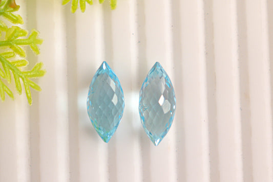 BLUE TOPAZ Faceted Briolette Marquise Shape | 15 Pieces | 6x10mm to 9x18mm | Gemstone Beads for jewelry making | Beadsforyourjewellery