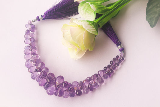 Amethyst Faceted Drops | 5x7mm to 8x12mm | 10 inch | 22 Pieces | Center Drill | Natural gemstone beads | Beadsforyourjewellery