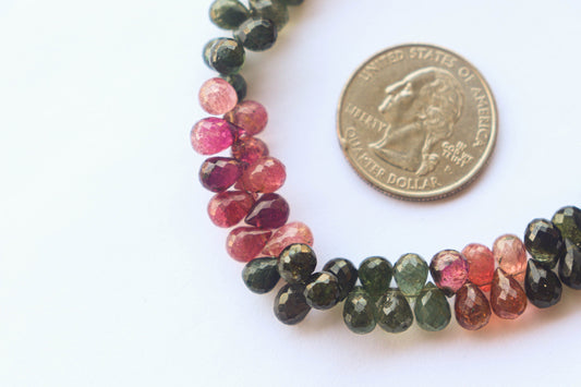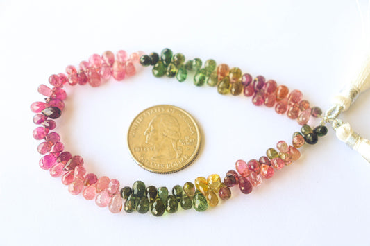 Multi Tourmaline Faceted Drops | 5x7mm | 9 inch | 88 Pieces | Natural Tourmaline Gemstone | Beadsforyourjewellery | BFYJ895