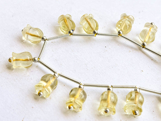Lemon Quartz Flower Carving Beads, 9x9mm | 10 Pieces