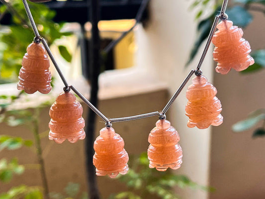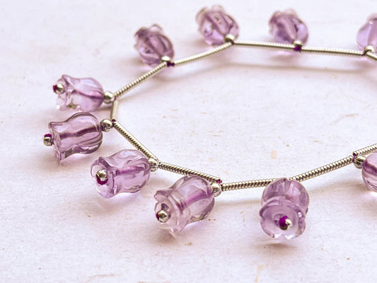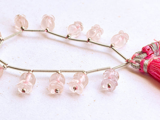 Pink Strawberry Quartz Flower Carved Bell Shape Beads