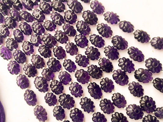 Black Onyx Flower Carving Beads | 10 Pieces, 11x11mm