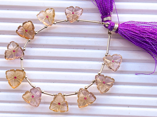 Ametrine Flower Carving Beads with Cubic Zirconia
