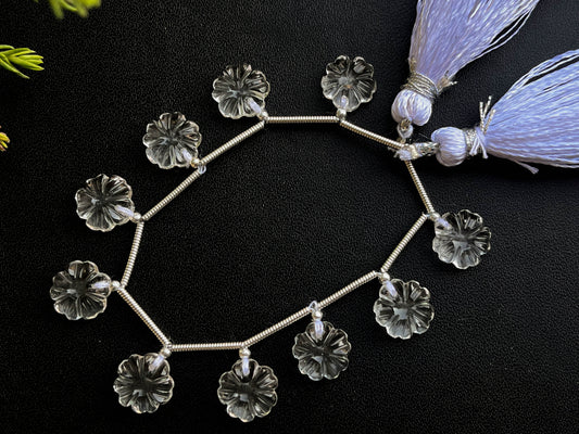 Crystal Quartz Flower Carving Beads, 10 Pieces | 11x11mm