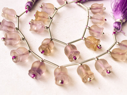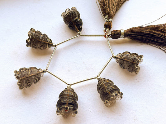 Frost Smoky Quartz flower carving Lily of the valley shape beads