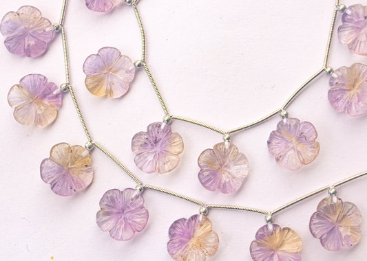 Lemon Quartz Flower Carving Beads, Center Drill, 20x20mm, 2 Pieces, Natural Lemon Quartz Gemstone, Beadsforyourjewellery