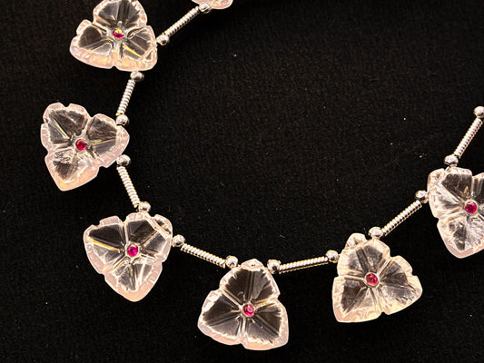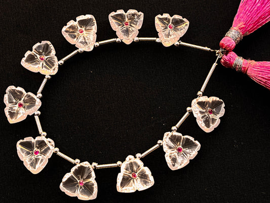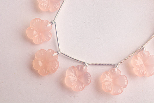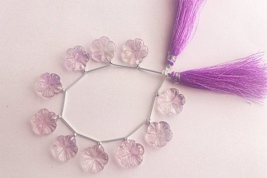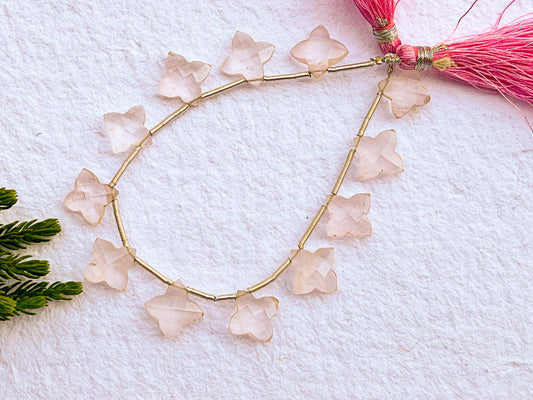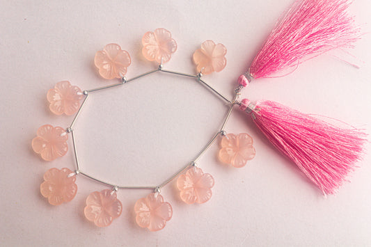 Rose Quartz Flower Carved Beads | 11x11mm | 10 Pieces