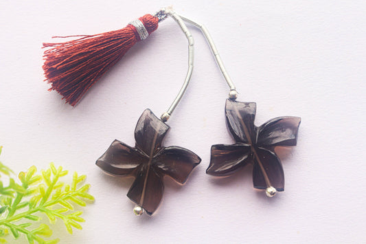 Smoky Quartz Flower Carving Beads | Center Drill | 20x20mm | 2 Pieces | Natural Smoky Quartz Gemstone | Beadsforyourjewellery