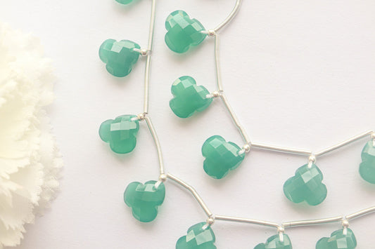 Green Onyx Flower shape Faceted Beads, 8 Inch String, Natural Gemstone, 10 Pieces, 11x11mm, Beadsforyourjewelry