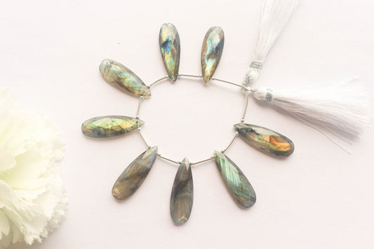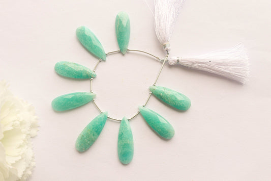 Amazonite Faceted Long Pear Shape Briolette | 10x30 Pieces | 8 Pieces | Side Drill | Natural Gemstone Beads for jewelry making
