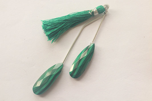 Malachite Pear Shape Matching Pair Faceted Briolette No. 4