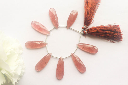 Strawberry Quartz Faceted Long Pear Shape Briolette | 10x30 Pieces | 10 Pieces | Side Drill | Natural Gemstone Beads for jewelry making