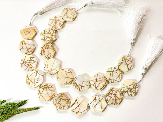 Natural Mother of Pearl with Gold Color Coating Beads | Hexagon Shape | 20x20mm | 10 Pieces | 8 Inches | Beadsforyourjewellery