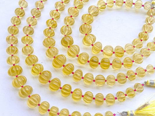 AAA Natural Lemon Quartz Gemstone Carved Melons Beads