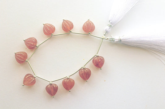 Natural Pink Strawberry Quartz Gemstone Carved Rondelle Beads