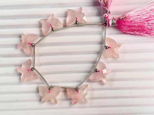 Rose Quartz Carved faceted butterfly shape beads, 10 Pieces