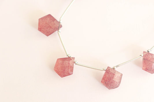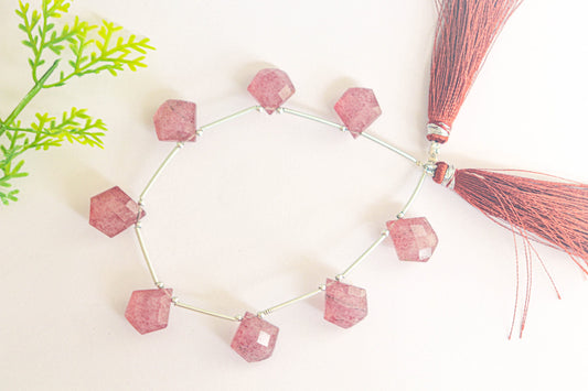 Strawberry Quartz Gemstone Tumble Shape Faceted Drops