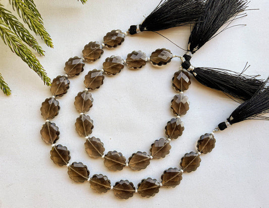 SMOKY QUARTZ Fancy Flower Shape Faceted Beads