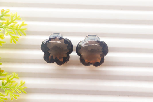 Smoky Quartz Flower Carving Beads | Center Drill | 20x20mm | 2 Pieces | Natural Smoky Quartz Gemstone | Beadsforyourjewellery