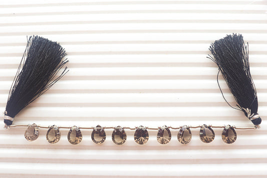 Smoky Quartz Marquise Shape Briolette Faceted | 6x12mm | 6 inches | 14 Pieces | Side Drill | Natural gemstone beads | For Jewelry making
