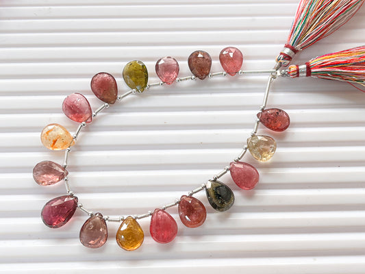 Natural Multi Tourmaline Pear Shape Cut Stone Beads