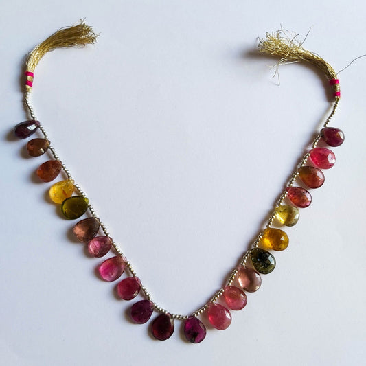 Multi Tourmaline Faceted Drops | 7x10mm | 9 inch | 82 Pieces | Natural Tourmaline Gemstone | Beadsforyourjewellery | BFYJ898