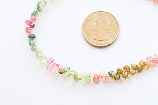 Multi Tourmaline Pear Faceted Briolette | 3x5mm | 10 inch Full String | 100 Pieces | Natural Tourmaline Gemstone | Beadsforyourjewellery | 902