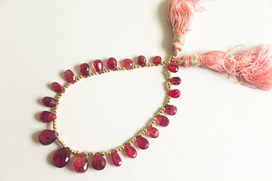Pink Tourmaline Briolette Faceted, 4x5 to 8x10mm, 23 Pieces, Side drill, 6 inch Strand, Natural Gemstone Beads for jewelry making