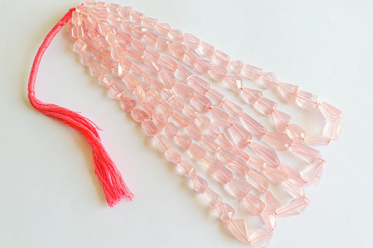 Rose Quartz Faceted Uneven Tumbles, 16 inch String, 8x10 to 8x14mm, 35 Pieces, Center drill, Natural Gemstone Beads for jewelry making