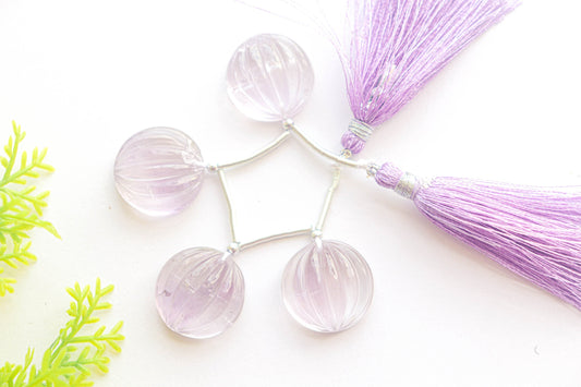 Natural Pink Amethyst Flat Back Melon Carved Beads | 18x18mm | 4 Pieces | Natural Gemstone | Beadsforyourjewellery