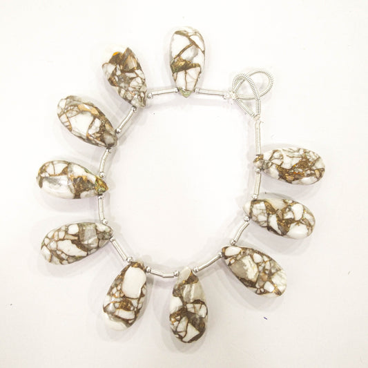 White Composite Gemstone Pear Shape Briolette Side Drill Beads