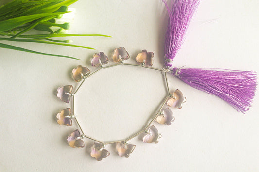 Bi Color Lemon Quartz Smooth Butterfly Shape Double Drill Beads, Rare Gemstone Design for Jewelry Making, 10x12mm, 10 Pieces String