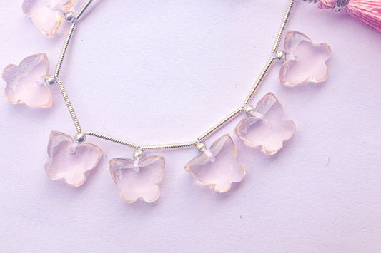Rose Quartz Smooth Butterfly Shape Double Drill Beads, Rare Gemstone Design for Jewelry Making, 10x12mm, 10 Pieces String