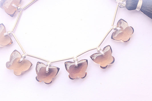 Smoky Quartz Smooth Butterfly Shape Double Drill Beads, Rare Gemstone Design for Jewelry Making, 10x12mm, 10 Pieces String