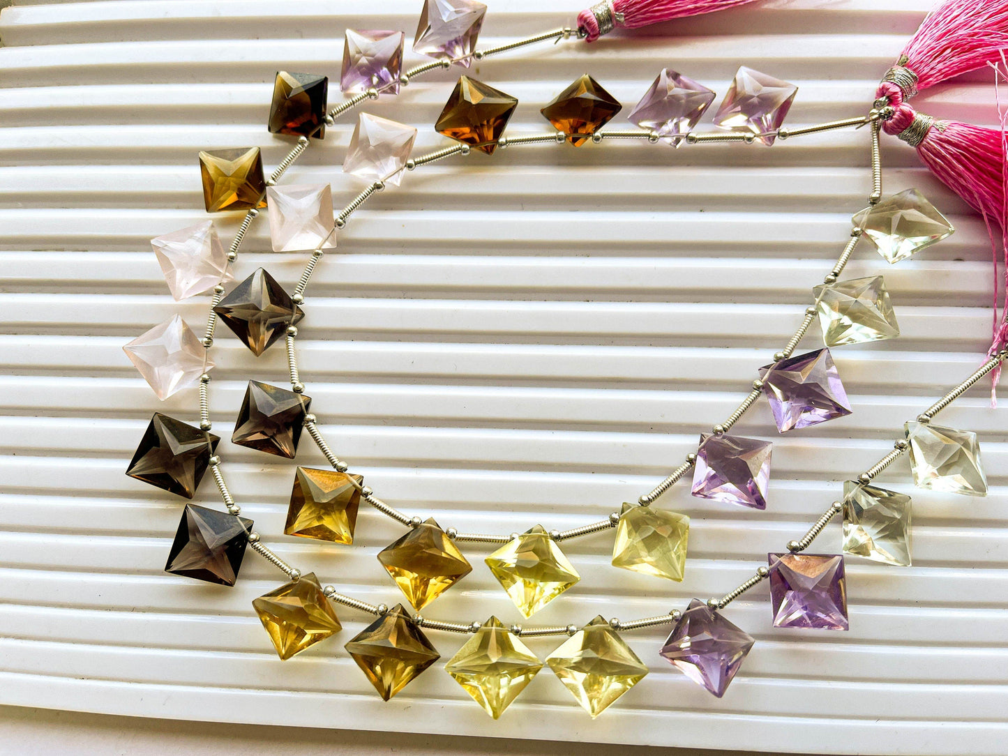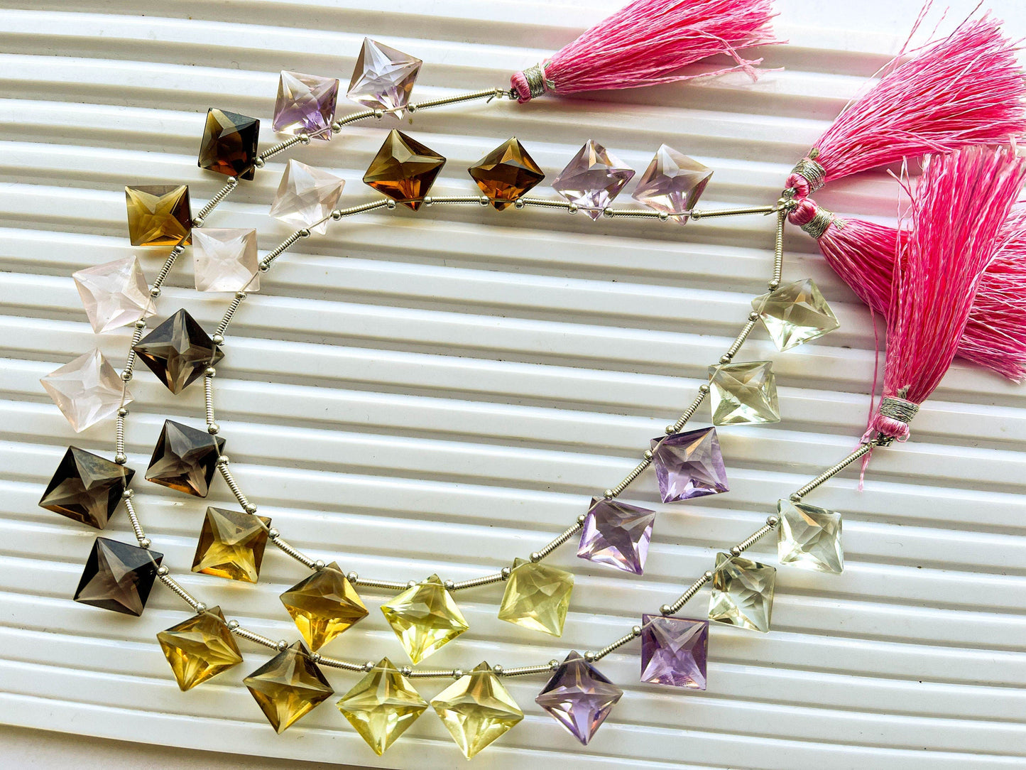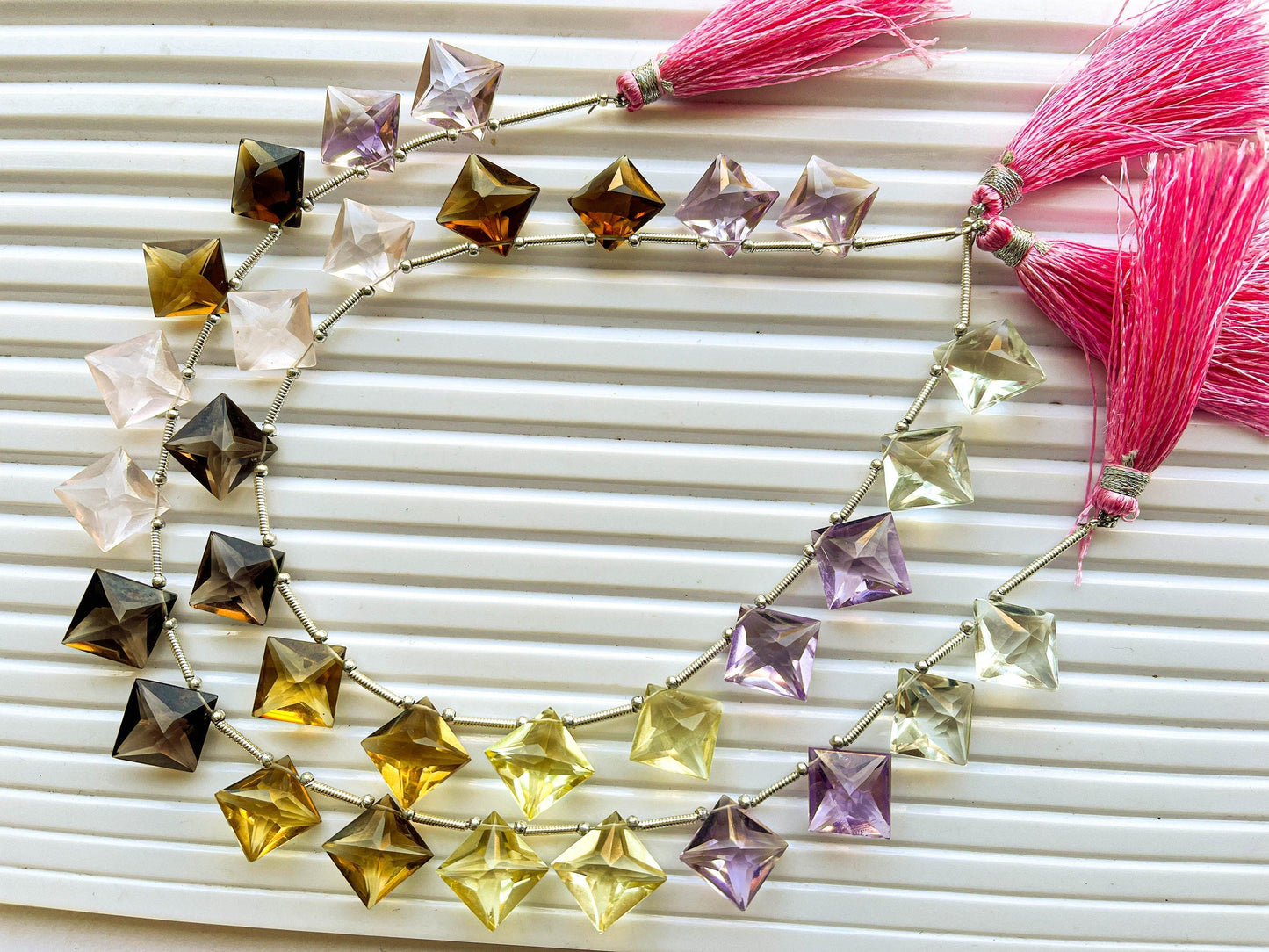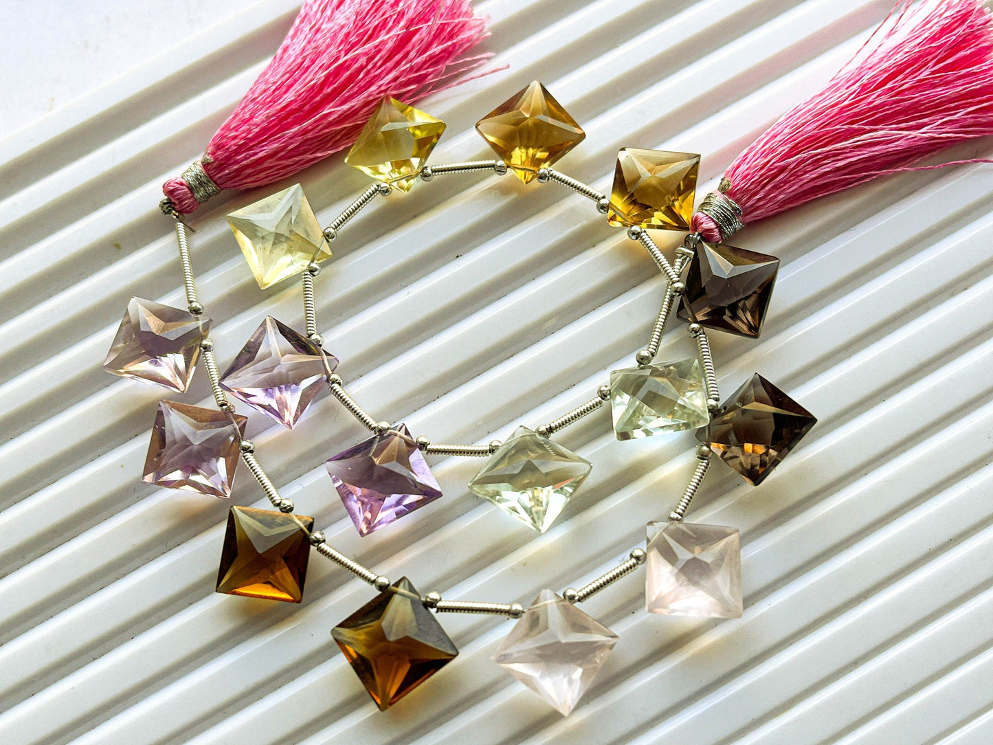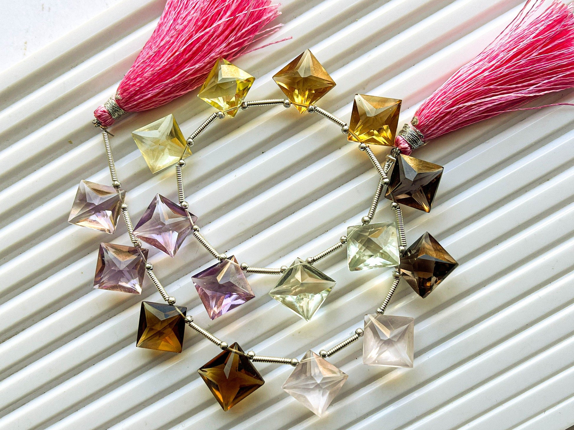 16 Pieces Mix Natural Gemstones Square Shape Diamond Star Cut Beads, Matching Pair, Concave Cut Beads, Concave Cut Square Shape Beads