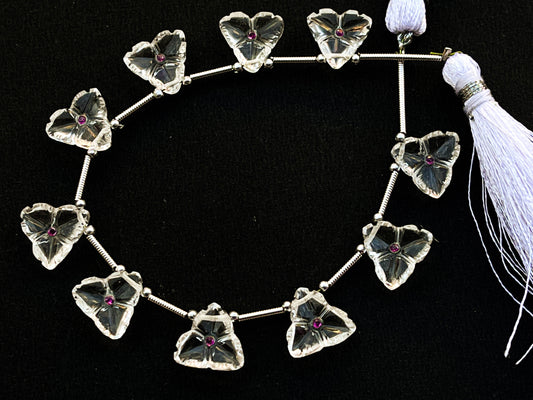 Crystal Flower Carving Beads with Pink Cubic Zirconia