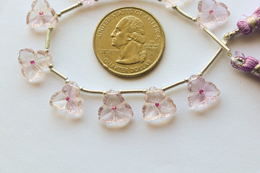 Pink Amethyst Beads Flower Shape with Pink Cubic Zirconia