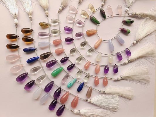 Mix Natural gemstone Frosted Slanted shape smooth Drops