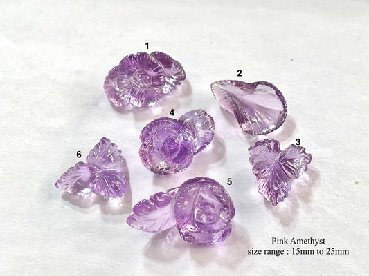 Beautiful! Hand carved AAA Quality Pink Amethyst flower Carvings