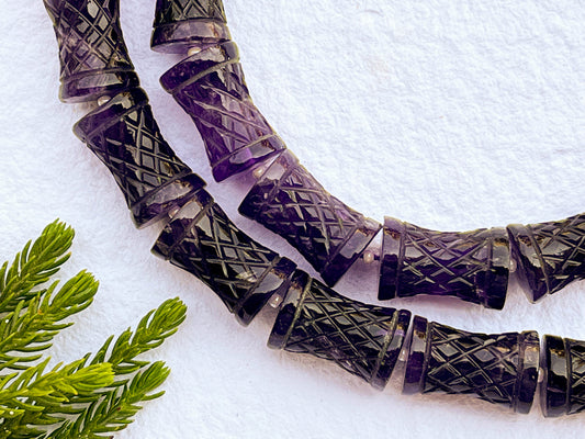 Amethyst Faceted Laser Carving Square Shape, Matching Pair
