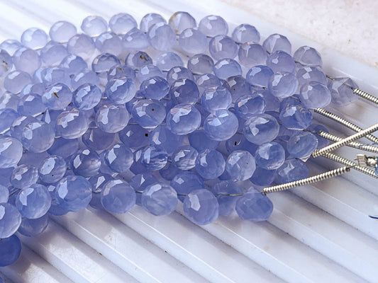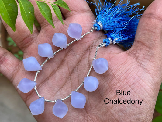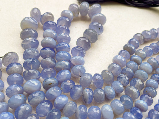 Natural Blue Chalcedony Micro faceted Onion shape Drops, Blue Chalcedony gemstone, Blue Chalcedony teardrops, Blue Chalcedony drops