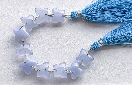 Blue Chalcedony Smooth Butterfly Shape Double Drill Beads, Rare Gemstone Design for Jewelry Making, 10x12mm, 10 Pieces String