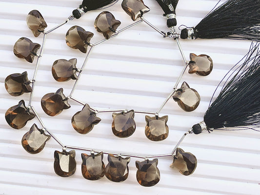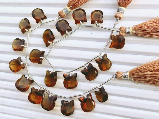 Smoky Quartz Cat Shape Faceted Briolette Beads