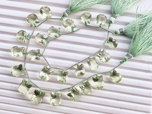 Green Amethyst Cat Shape Faceted Briolette Beads