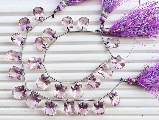Lavender Quartz Cat Shape Faceted Briolette Beads