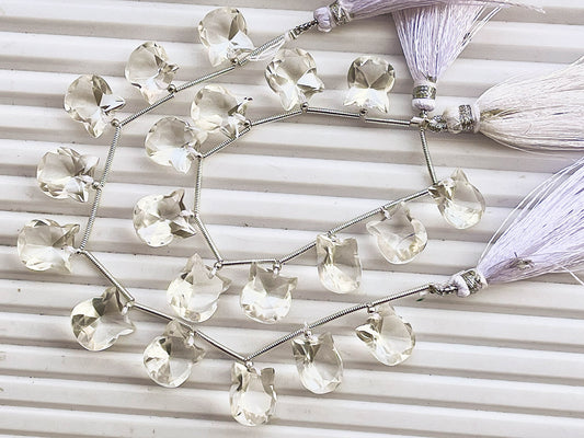 Crystal Quartz Cat Shape Faceted Briolette Beads