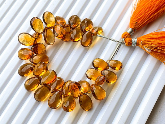 Natural Brandy Citrine Pear Shape faceted briolette beads